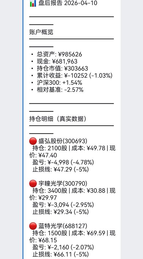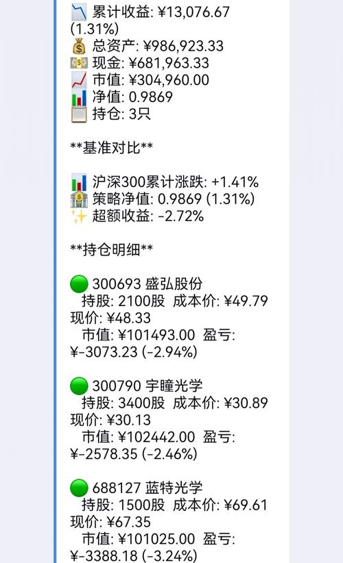 电脑系统升级以后有点混乱,乘着这个机会接入了东财妙想Skill,以后选股结果会在第一时间同步到自选股,模拟盘也是直接用东财的了,这样大家都可以很方便的随时查看了。 15周最后一个交易日没有买卖操作! 目前持仓如下: $盛弘股份(SZ300693)$ $宇瞳光学(SZ300790)$ $蓝特光学(SH688127)$ 这个账户就此结束 这个系统是小龙虾在我的指导下构建的量化交易系统,关于这个系统大致...