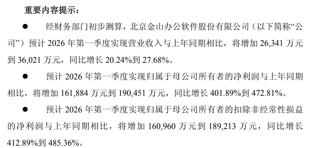 资讯 金山办公:预计一季度归母净利润同比增长401.89%至472.81%