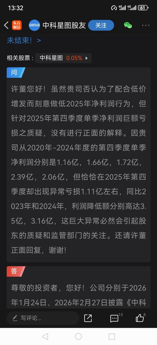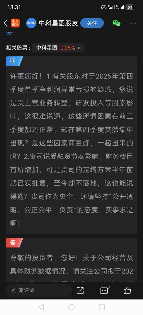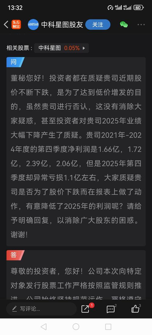 $中科星图(SH688568)$作为央企,中科星图的高管层还是要秉持公开透明的态度和精神,正面回复投资者的关注和关切,而不是敷衍应付、含糊其词地回复。这样无法消除几万名股东的质疑。