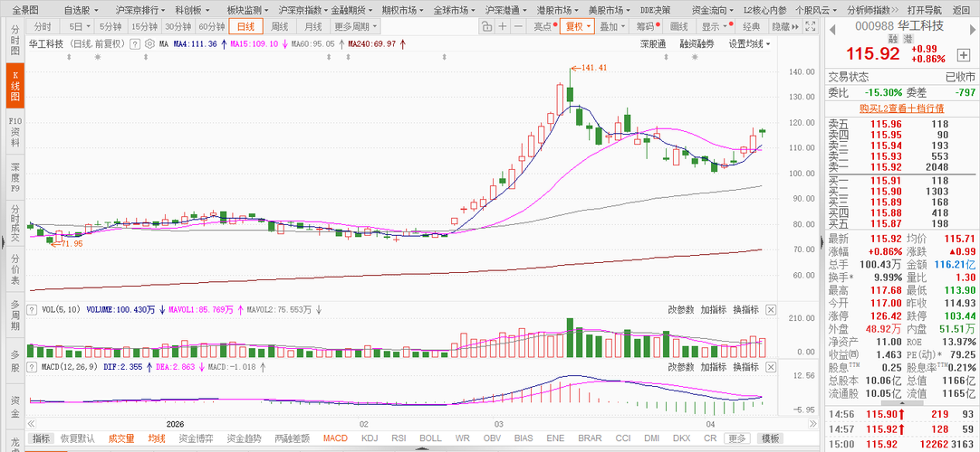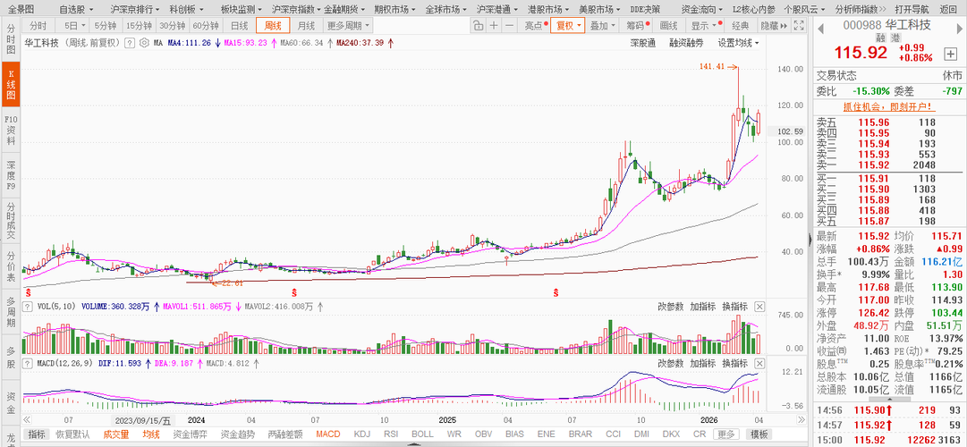 核心标的走势复盘(仅供参考,不构成买卖建议) 华工科技(000988)业绩表现相对稳定,每股收益同比有所提升,光模块业务订单情况相对稳定,行业需求维持一定水平。公司近期披露技术研发与产能布局相关进展,1.6T产品推进情况受到市场关注,消息面整体偏中性。从盘面来看,资金面呈现一定流出迹象,股价冲高后出现震荡整理,波动出现一定变化。整体走势仍在区间内运行,公司依托算力需求与技术积累,基本面情况相对稳定...