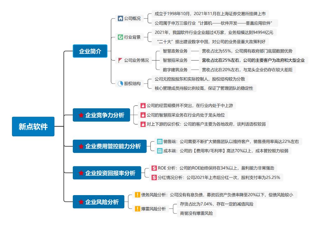 - 新点软件作为国内政企信息化整体解决方案提供商的龙头,公司围绕智慧招采、智慧政务、数字建筑三大核心业务领域,为各级政府部门、大型集团企业及相关行业单位提供从规划咨询、软件开发与智能设备研发、实施交付到持续运营维护的全方位服务,其销售与服务网络已覆盖全国31个省市自治区。新点软件坚持以技术创新引领行业创新,先后参与国家部委和省级标准制定、课题研究40余项,通过“CMMIL5软件能力成熟度认证”,取得软件著作权700余项,获得“2020年中国软件行业最具影响力企业”“2020智慧招采行业信息化领军企业”“2021年数字政府领军企业”等重磅奖项,荣登“2021年度软件和信息技术服务竞争力百强企业”榜单。公司致力于成为国内推动政企数字化转型的领航者,让招标采购更有深度、政务服务更有温度、政府监管更有力度、数据共享更有广度,以数字化服务推动社会高质量发展。新点软件上市高达38亿多元的净募集资金,以及今年前三季度占营收25%的4亿元超高研发投入,为公司持续引领国内智慧政务软件服务和保持行业龙头地位,注入了坚实的资本动能和提升了自主创新的驱动力。《国务院办公厅关于印发全国一体化政务大数据体系建设指南的通知》,要求在2023年底前,全国一体化政务大数据体系初步形成。在数字经济高景气度的大背景下,新点软件三大业务板块有望共同发力,驱动发展。作为我国政务大数据体系的引领者,政策将助力公司未来三年业绩呈现高成长相对比较确定,预计年复合增长率可达30%以上,推断2022年至2024年公司EPS分别为2.03元、2.68元和3.65元左右。显示最新动态市盈率只有25倍、19倍及14倍上下,在行业细分板块中股价显然是被低估了,其价值洼地比较显现,是难得的中线价值投资优选标的。新点软件上市一年以来,最新股价离48.49元的发行价只有6.7%的溢价,主要是今年前三季度受国内疫情呈现点状散发影响而业绩增长受到承压。从四季度开始受疫情防控政策优化调整的利好驱动,以及全年业绩实现稳定增长的预期刺激,短线股价有望迎来修复性补涨行情,中线则股价上升空间广阔,投资者逢低可予以重点关注。