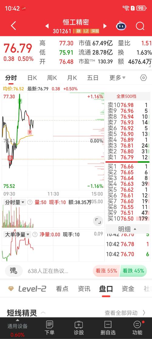 $恒工精密(SZ301261)$一会拉起来,到收盘估计在盘上一点五个点左右收盘