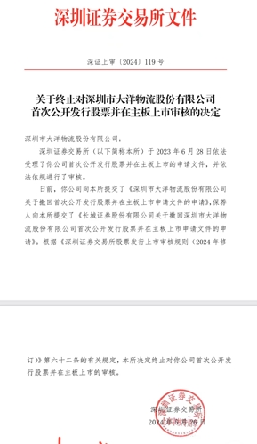 【深交所终止大洋物流IPO审核】