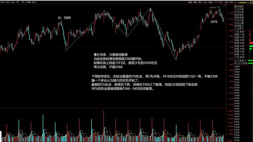 15分钟K能保住3364应该就没有问题不然就往下掉了尾盘要是微盘股诈尸了就不好玩了期待不要往下掉