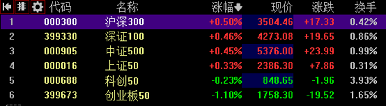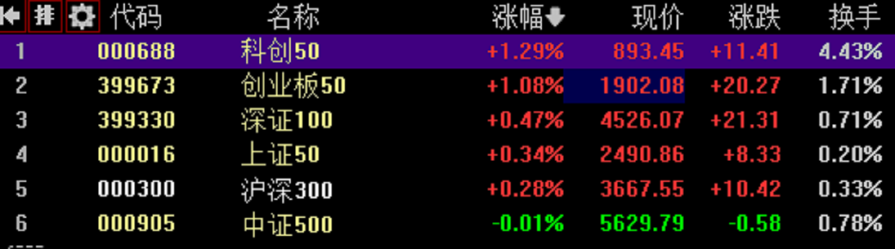 2024.01.09市场评级:B+(评级标准:A:全部上涨,且最低涨幅大于1%;B+:六支指数至少上涨4支;B:六支指数至少上涨3支;B-:六支指数至少上涨1支;C:六支指数全部下跌;)市场排序:市场涨幅最大的是创业板50指数,跌幅最大的是科创50指数。市场逻辑推论:重大相关新闻“美国纽约联储12月调查显示,消费者对未来一年的通胀预期在12月份从前一个月的3.36%降至3.01%,为三年低点。...