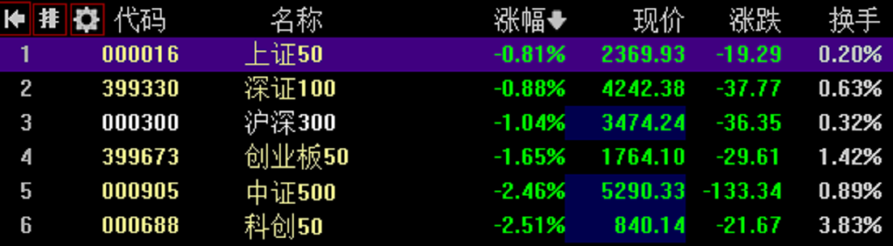 2023.10.16市场评级:C(评级标准:A:全部上涨,且最低涨幅大于1%;B+:六支指数至少上涨4支;B:六支指数至少上涨3支;B-:六支指数至少上涨1支;C:六支指数全部下跌;)市场排序:市场跌幅最小的是上证50指数,跌幅最大的是创业板50指数。市场逻辑推论:重大相关新闻“巴以冲突已致双方超4100人死亡;消息称美以正讨论拜登潜在的访以事宜;伊朗外长自本轮巴以冲突以来首次会见哈马斯领导人...