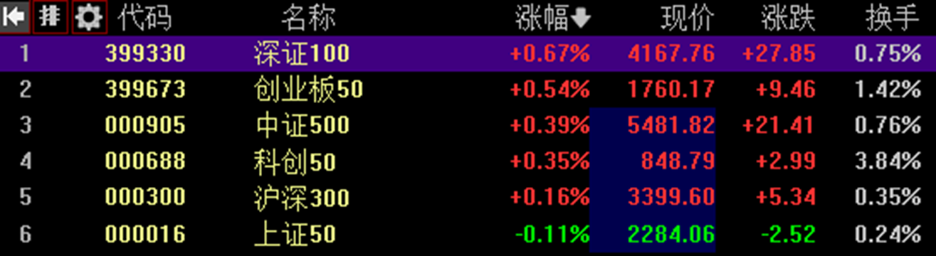 2023.12.28市场评级:A(评级标准:A:全部上涨,且最低涨幅大于1%;B+:六支指数至少上涨4支;B:六支指数至少上涨3支;B-:六支指数至少上涨1支;C:六支指数全部下跌;)市场排序:市场涨幅最大的是创业板50指数,涨幅最小的是中证500指数。市场逻辑推论:重大相关新闻“随着交易员对各国央行明年降息的预期升温,全球债务市场有望创下两个月来的最大涨幅。掉期交易商预计明年美国和英国将降息...