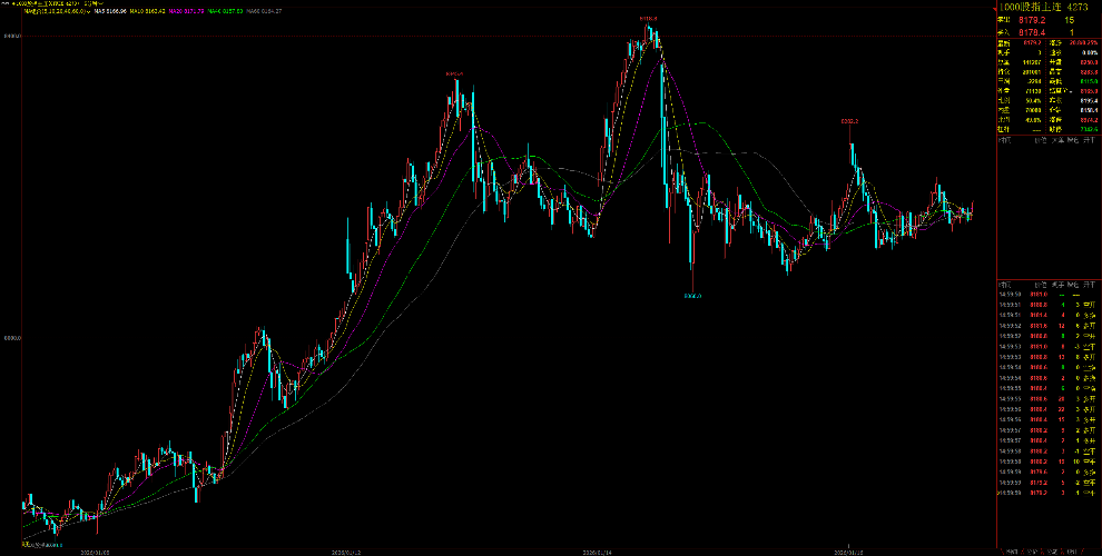 前面那一波一路推上去,到8418那里已经是情绪高潮了,后面一根急杀砸到8060,说白了就是把短线多头一次性洗干净。之后这段走的就不是趋势,是修复,是磨,是在重新找平衡。 现在这个位置,我不把它当强多,也不当要崩的地方。更像是在中间蓄力,等下一段方向自己走出来。 5分钟均线已经说明问题了,5、10、20全缠一起,40、60走平,这种结构下我一般不赌方向,只做“关键位”。 我盯的支撑很明确。 下面第一...