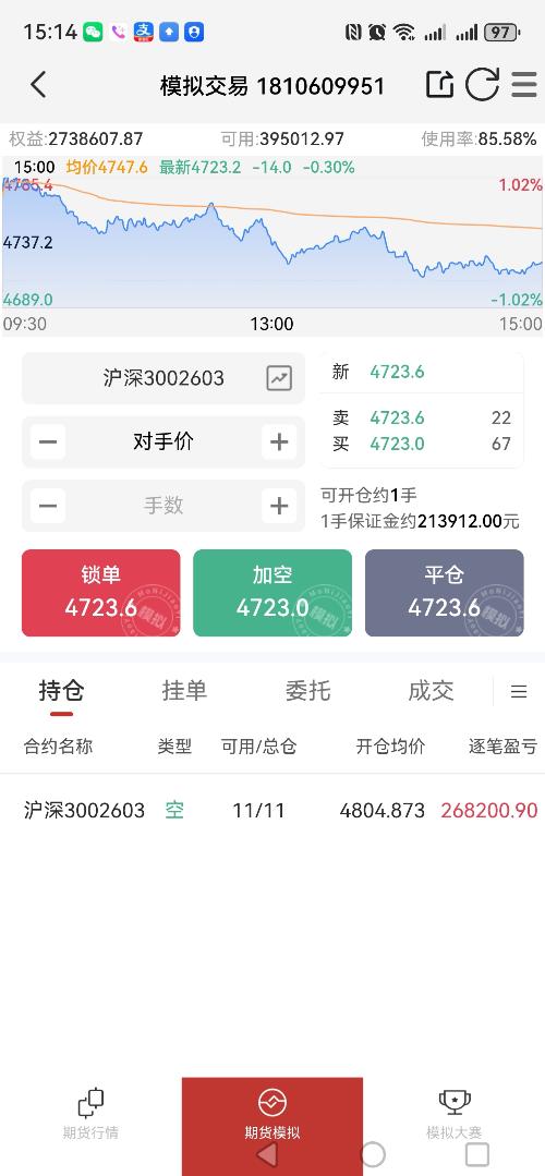 沪深三百期货模拟盘65W-1000W