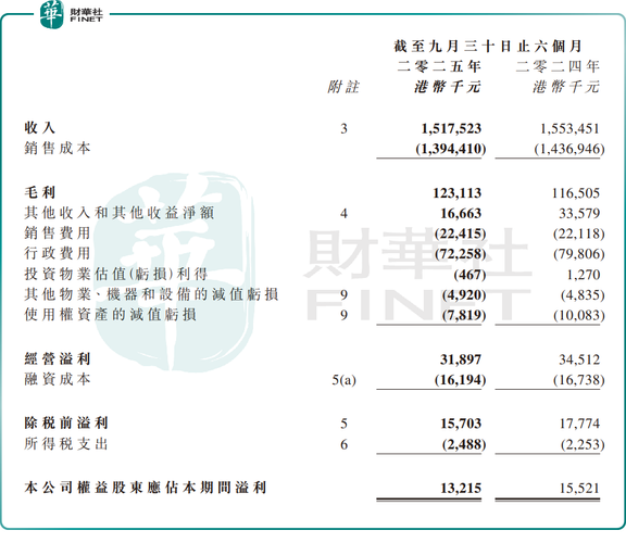 公告 截至二零二五年九月三十日止六个月中期业绩公布