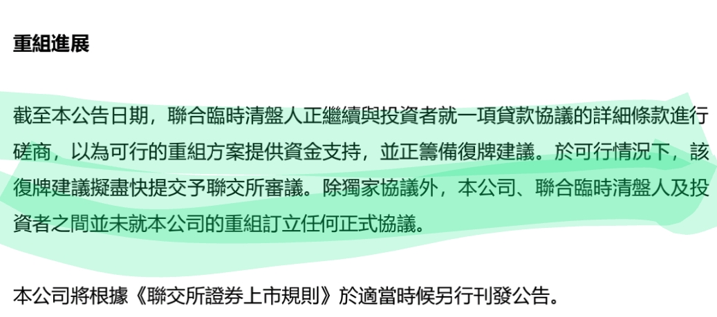 公告 复牌进展之季度更新及继续暂停买卖