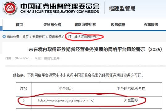 天誉国际贵金属交易境内牌照缺失证监会将其列入风险警示名单!