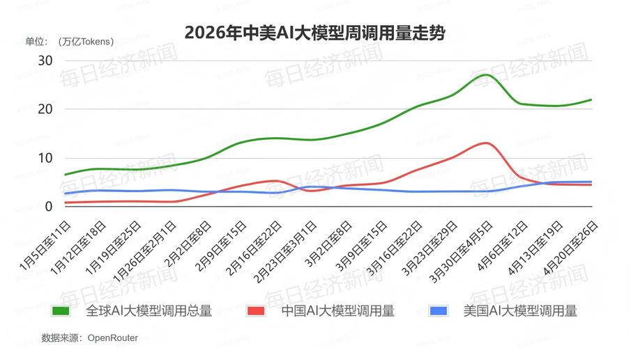 全球AI大模型周调用量连跌两周后小幅回升,Kimi K2.6位居榜首。