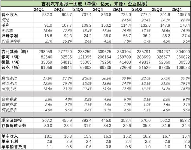吉利汽车2025年全年财报显示,营业收入录得3452亿元,同比增长25%,其中第四季度录得1058亿元,同比增长22.4%,略高于分析师预期;第四季度归母净利润录得37.4亿元,归母净利率仅为3.5%,财报一图流如图所示(单位亿元,下文所有数据来源均来自企业财报)。 自《台州宣言》以来,吉利明显加快了资本市场的整合动作,2025年报期内,极氪从纽交所退市并入吉利母体,浙江几何的分销渠道也通过频繁的...