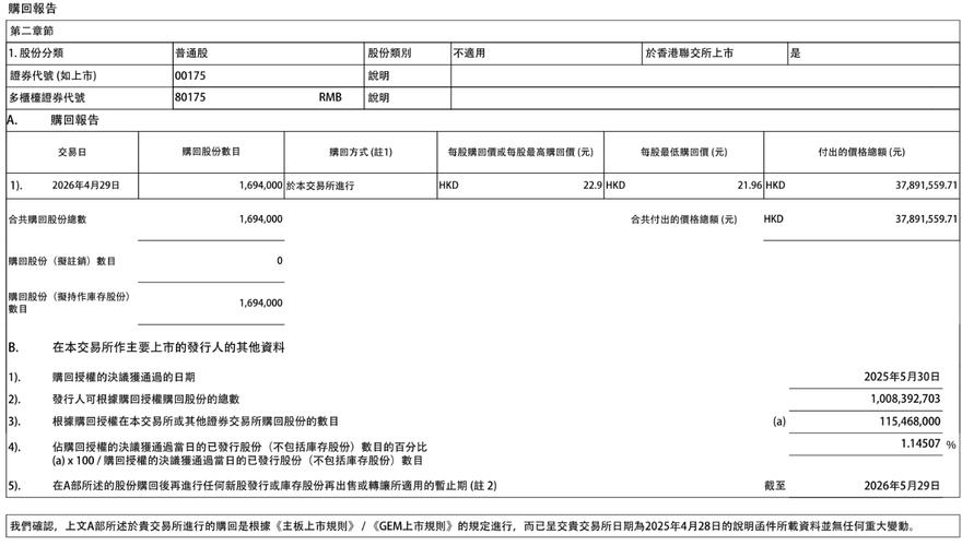 资讯 【图解财报】吉利汽车一季报盈利41.66亿人民币,同比减少26.56%