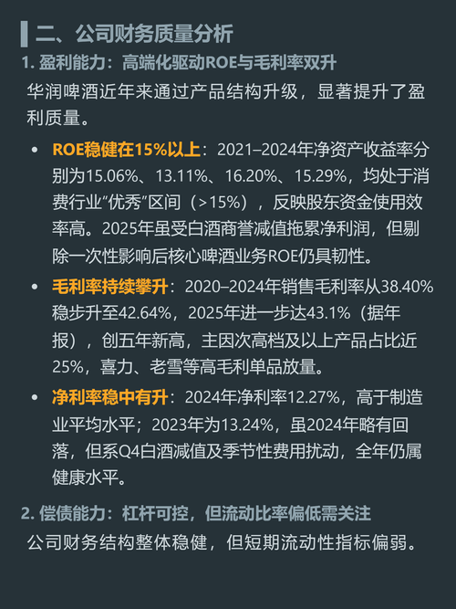 $华润啤酒(HK|00291)$$青岛啤酒(SH600600)$$燕京啤酒(SZ000729)$很多人觉得啤酒行业早就卷到没增量了,华润啤酒居然悄悄把综合毛利率做到了43.1%,创五年新高。 现在国内啤酒行业CR5已经超过80%,是典型的寡头主导格局,不用打恶性价格战,反而有稳定定价权,需求刚性比普通可选消费强,技术迭代风险几乎为零。2025年华润啤酒总销量逆势涨1.4%,次高档以上产品占比接近2...