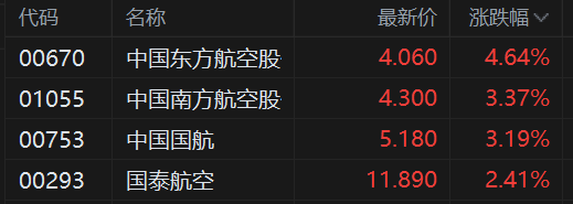 港股异动丨利好叠加,航空股集体反弹,中国东方航空涨4.6%