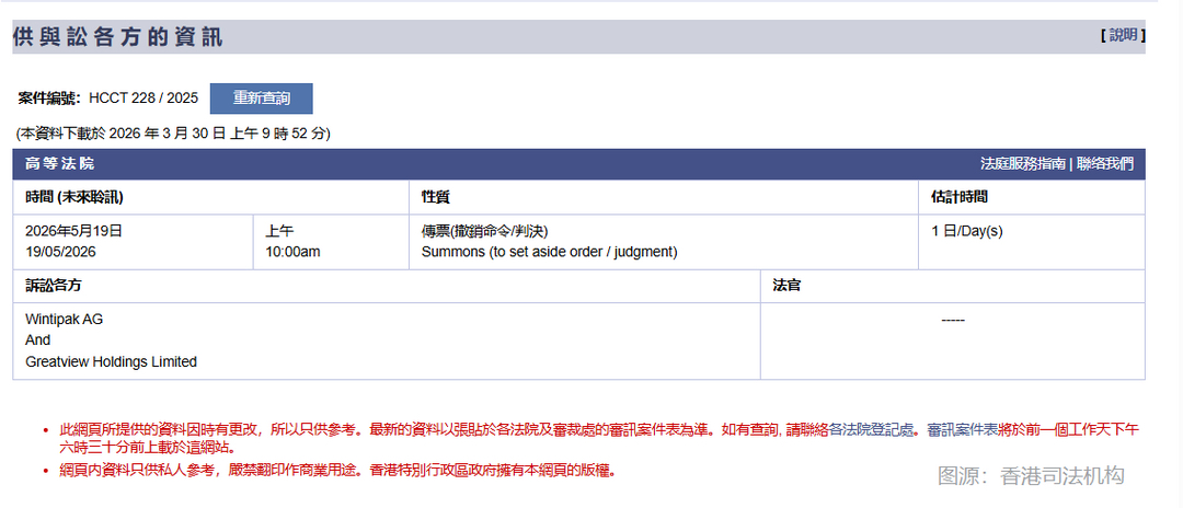 新巨丰“蛇吞象”收购纷美包装(00468.HK)的纷争,历经董事会控制权更迭、多轮跨境仲裁诉讼拉锯、核数师辞任、股份长期停牌之后,再曝信披疑云。 从香港司法机构官网公开信息核实确认,纷美包装间接全资附属公司GreatviewHoldingsLimited(丰景集团有限公司),与公司原国际业务核心运营主体WintipakAG,共同涉及香港高等法院案号为HCCT228/2025的诉讼案件,该案已于20...