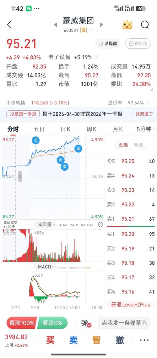 $豪威集团(HK|00501)$95.6附近鸭力,逐步把低位的麦锄
