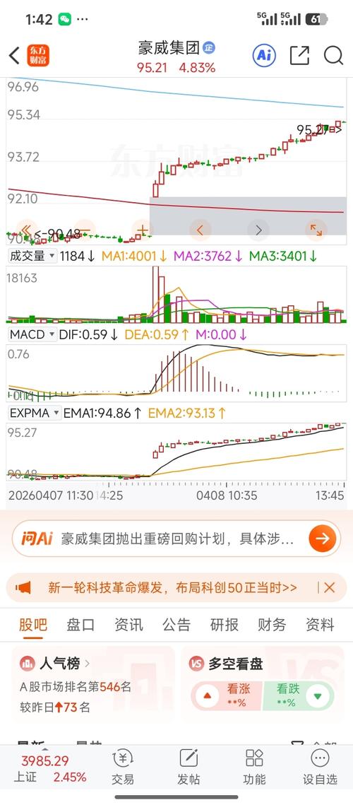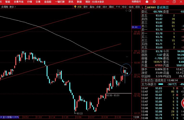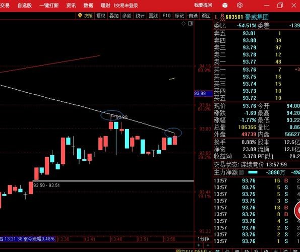$豪威集团(HK|00501)$1分钟线都过不去就这么鸭这走?1分钟线走平了93.75,15分钟向下牵引说明上升空间很小需要把均线拉下来!