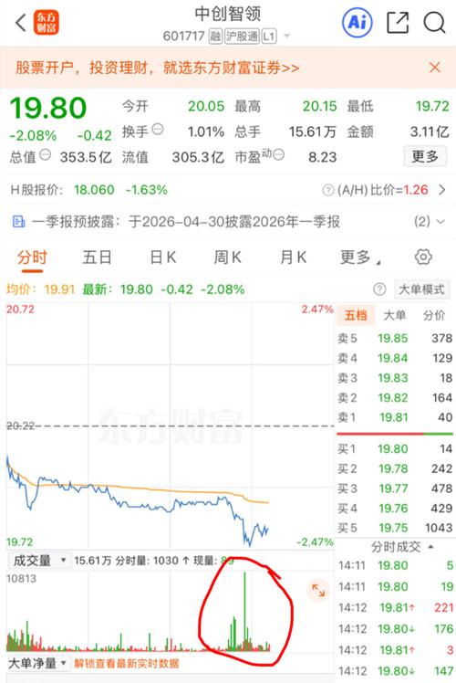 $中创智领(HK|00564)$ A放量了,H这边还不跟。哈哈, 目测,A应该也要到底部了。 这个位置,大盘拉红,不是拉权重的那种拉红情况下。 煤机竟然很突兀的,放巨量。 我的解读是,暂时吸不到筹码了。只能通过对倒的方式,再吸一波最后的筹码。 如果纯出逃的话,几万手的砸单强度下不会有这么强的承接力度。 看3点能不能,拉回19.9以上。