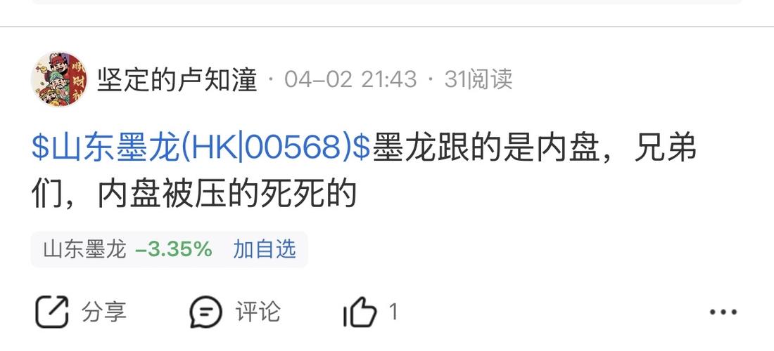 $山东墨龙(HK|00568)$死股明天暴跌