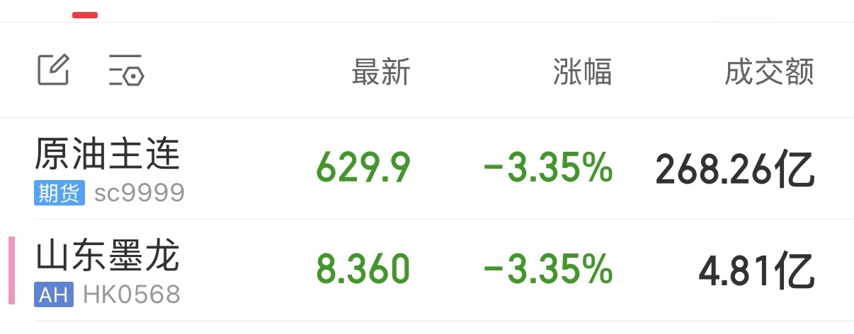 $山东墨龙(HK|00568)$之前说磨龙跟内盘,今天好了,价格都一模一样
