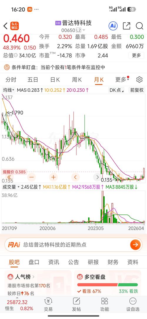$普达特科技(HK|00650)$昨天0.3来的今天0.45跑的,谢谢主力,祝发财