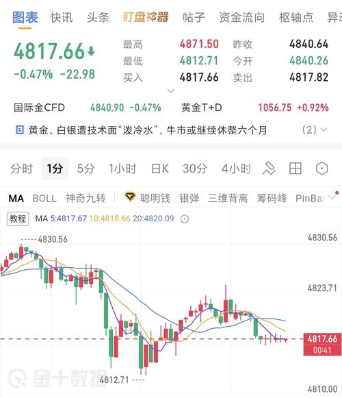 #复盘记录#午盘黄金当前处于高位震荡格局,早盘冲高后出现技术性回落,短周期指标显示有修复需求,整体等待晚间CPI数据进一步指引方向。当前关键支撑位集中在4820-4830区间,上方阻力主要看4870一线,短线建议以区间思路为主,不宜追高追低。 短线操作上,回踩至4820-4830区间可择机做多,止损设置在4800,目标先看4870 附近
