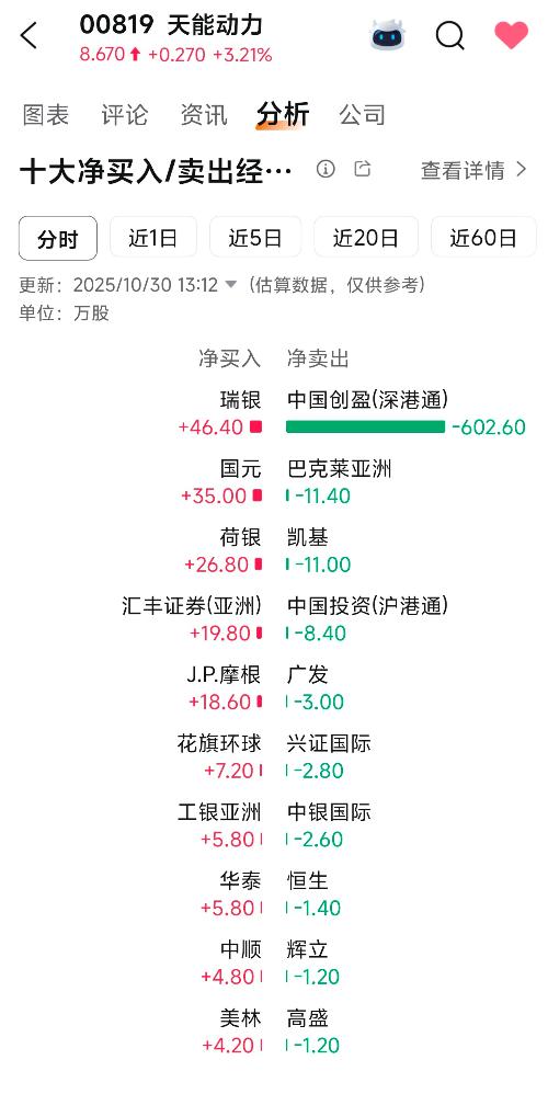$天能动力(HK|00819)$实实在在的利好,本该大涨,被两天调整玩没了。这帮南向家银和我在那这里的还是一个味道。