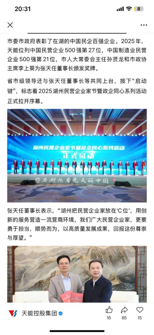 董事长张天任这么厉害吗: |2025年9月|当选全球储能与电池理事会联席主席,并获“全球储能和电池领袖”称号。