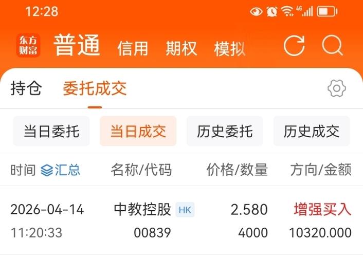 $中教控股(HK|00839)$买在无人问津时,今天继续买入4000股。