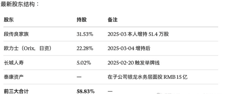 这是一份我自己用的研究笔记现在整理出来。 先说结论 不是重仓票。主要原因不是估值贵,而是尾部风险比我原先估计的大。下面把我看到的东西一条一条摆出来。 一、这家公司是什么 中国水务$中国水务(HK|00855)$是港股最大的民企水务运营商之一,业务覆盖20+省份/60+城市的30年特许经营合同。段传良家族2008年入主,持股31.53%,到今天18年。 FY2025收入HKD116.56亿,归母净利...