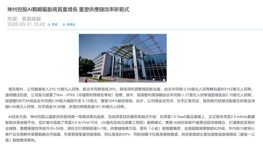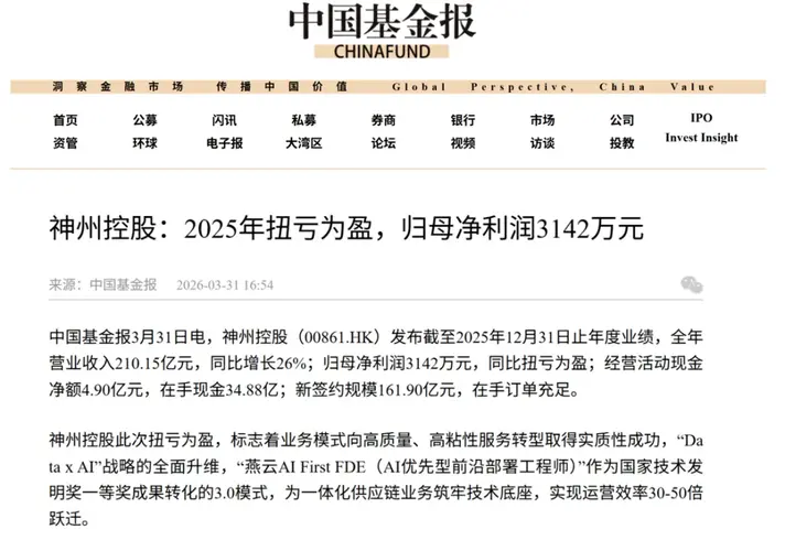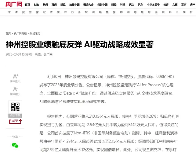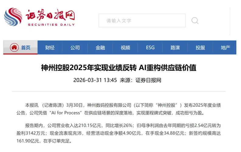 邀您观看:神州控股2025财报亮眼:扭亏为盈,AI驱动增长