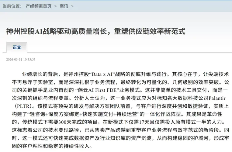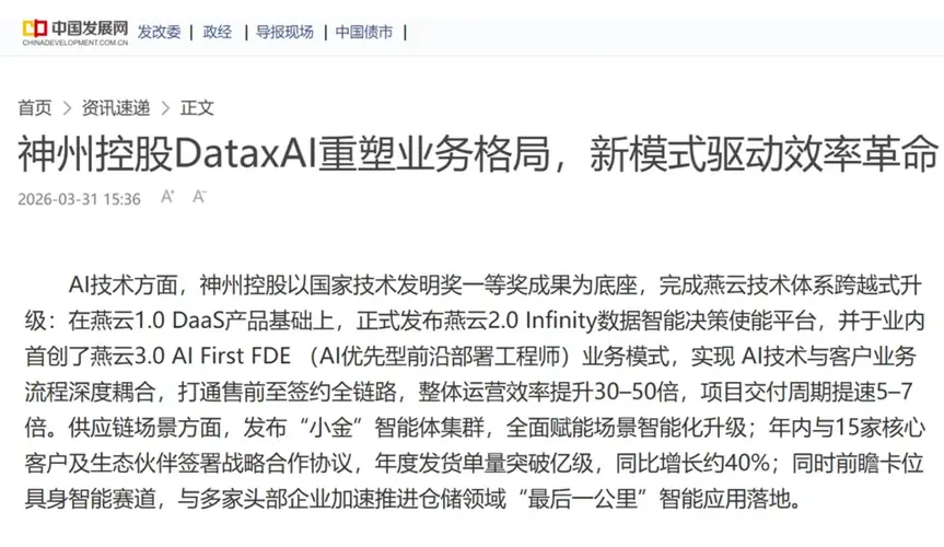 热点聚焦丨神州控股AI战略落地获媒体点赞