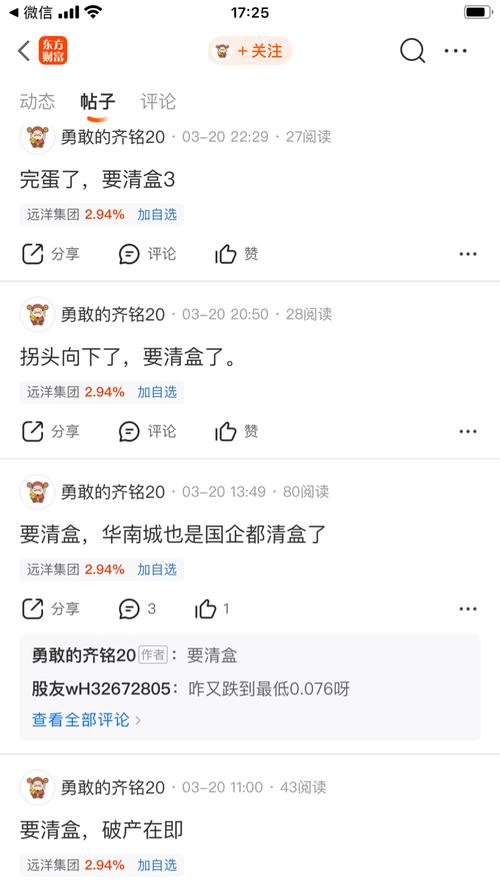 ·齐铭20唱多的华南城清盘了,这股从几毛钱唱到几分。说明了什么?从早到晚的唱歌,结果可想而知。除了出货就是跌。他买的是碧桂园、远洋集团央企