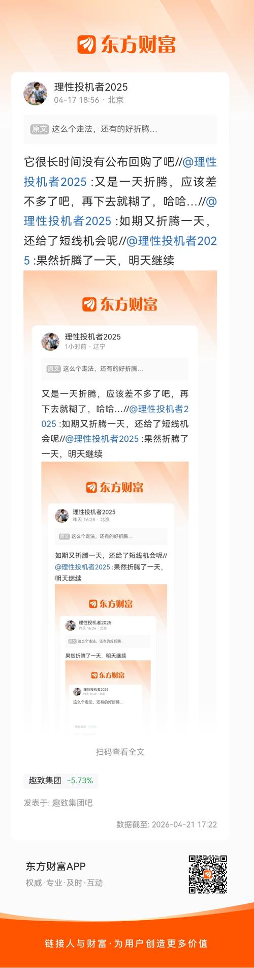周一的小幅度高开再回落,那今天这个走法也就没什么奇怪,继续折腾 //@理性投机者2025:它很长时间没有公布回购了吧 //@理性投机者2025:又是一天折腾,应该差不多了吧,再下去就糊了,哈哈… //@理性投机者2025:如期又折腾一天,还给了短线机会呢 //@理性投机者2025:果然折腾了一天,明天继续