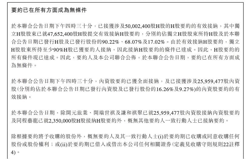 公告 联合公告 - 要约截止及要约结果及撤销上市地位