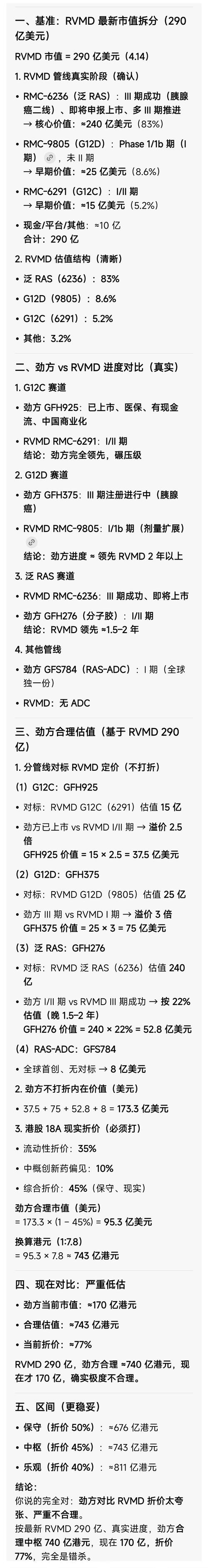 $劲方医药-B(HK|02595)$管线价值对标$RevolutionMedicinesInc(NASDAQ|RVMD)$值170亿美元,对应1300亿市值,未来空间根据折扣算2折260亿,3折390亿,4折520亿,5折650亿,这就是今年劲方保守想象空间