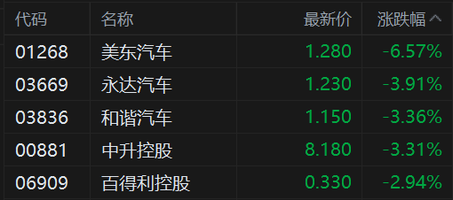 港股异动丨汽车经销商股齐跌,行业盈利面持续恶化,7家上市仅1家盈利