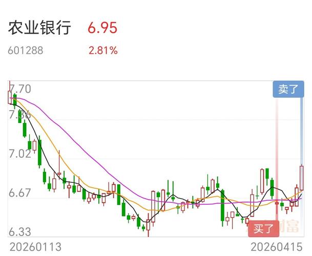 农业银行 今天以6.90元的价格卖出农业银行0.25成,该仓位系本人于4月8号以6.59元的价格买入。此次卖出,单标盈利4.7%,为第一系列总仓位贡献盈利0.12% 截至今日(2026年4月15日晚): 第一系列(1月28日建仓) 已卖出部分为总仓位落袋盈利:2.98%(较上次统计增加0.12%) 自然日天数:77天 年化收益率:≈14.95% $农业银行(SH601288)$