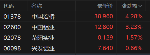 港股异动丨铝业股多数上涨 中国宏桥涨超4% 两大铝业巨头提高产品溢价