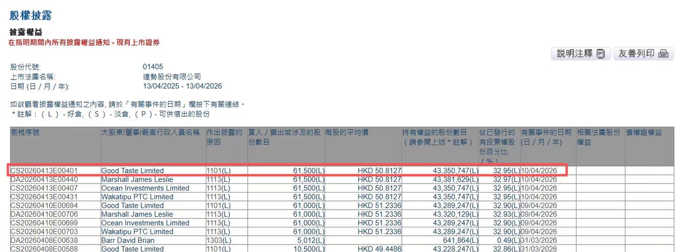 格隆汇4月2日丨达势股份(01405.HK)宣布,于2026年4月2日,公司根据2022年第一次股份激励计划向16名购股权承授人授出74.2万份购股权。