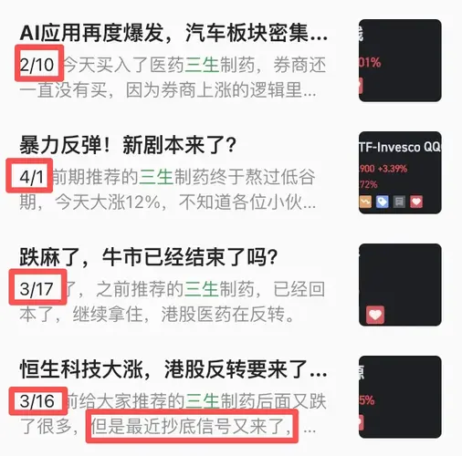 今天又是创新药大涨的行情,之前给大家重点推荐过三生制药,第一次出抄底信号是2月10日出现抄底信号,之后就又跌了一段时间,第二次出现抄底信号是3月10日,我在3月16日发文提醒大家的,今天继续大涨8.59%,信号很明确,继续拿住。$三生制药(HK|01530)$ 多次发文提醒: 创新药行情还是要看港股创新药,并且可能不是大的行业行情,需要精选一些个股,之前给大家说的是三生制药和中国生物制药,如果不看...