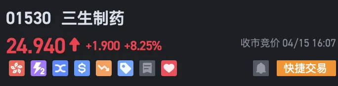 资讯 港股三生制药午后一度涨超9%