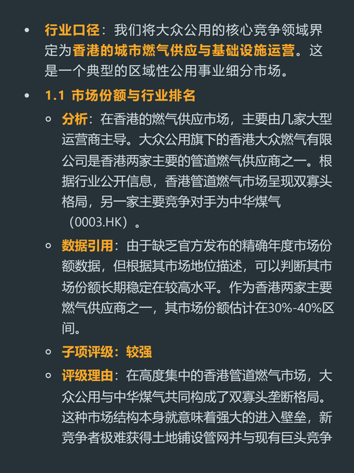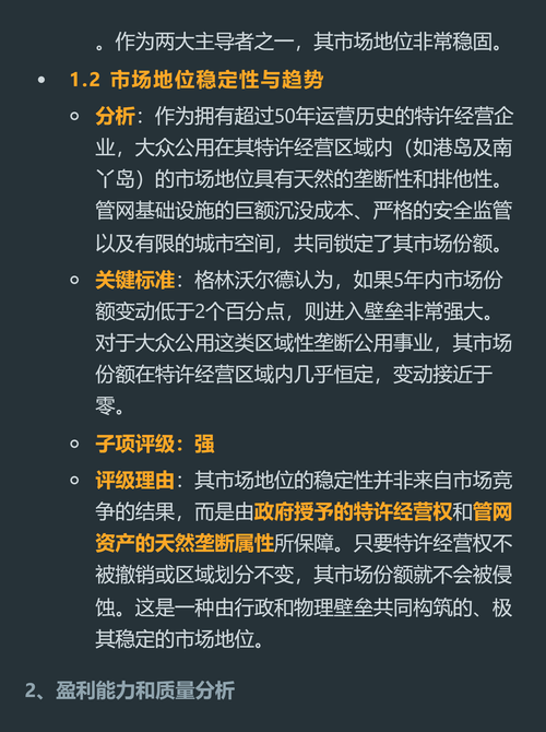$大众公用(HK|01635)$$上海环境(SH601200)$$首创环保(SH600008)$你以为拿到法定垄断权的公用事业,就一定躺着赚超额利润?香港上市的大众公用就是个典型反例。 它是香港仅有的两家管道燃气供应商之一,手握政府特许经营权,覆盖港岛及南丫岛区域。再加上燃气管网建设的巨额沉没成本,新玩家根本不可能拿到牌照、也砸不起钱铺平行管网抢市场,它的市场份额稳到常年几乎没有波动。 但这么稳的...