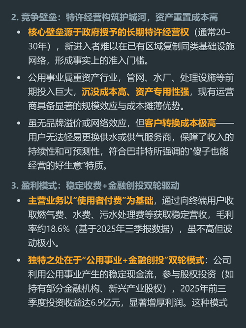 $大众公用(HK|01635)$$上海机场(SH600009)$$深圳燃气(SH601139)$你敢信,靠收燃气费、污水处理费的公用事业公司,居然靠股权投资一年赚了近7个亿增厚利润? 大众公用本质是拿了地方政府长期特许经营权的区域垄断运营商,特许经营权一般20到30年,在授权区域里没有竞争对手,用户也没法随便换供水供气服务商,属于典型的弱周期现金牛生意,不管经济冷热,基础民生服务的需求基本不会变。...
