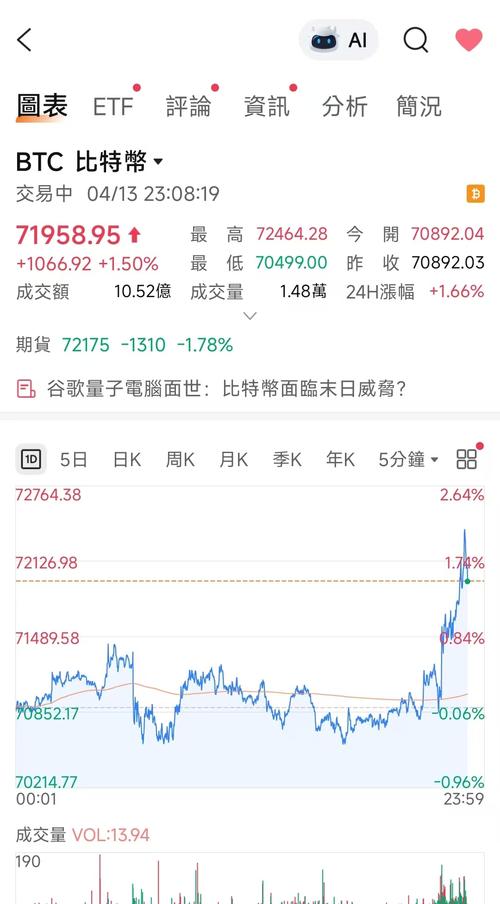 $德林控股(HK|01709)$截至2026年04月14日06:40(UTC+8): -比特币(BTC)价格:$74,188 -人民币:510,411 -24小时涨幅:+4.62% -24小时最高:$74,438 -24小时最低:$70,570 需要我帮你设置$75,000突破提醒吗?