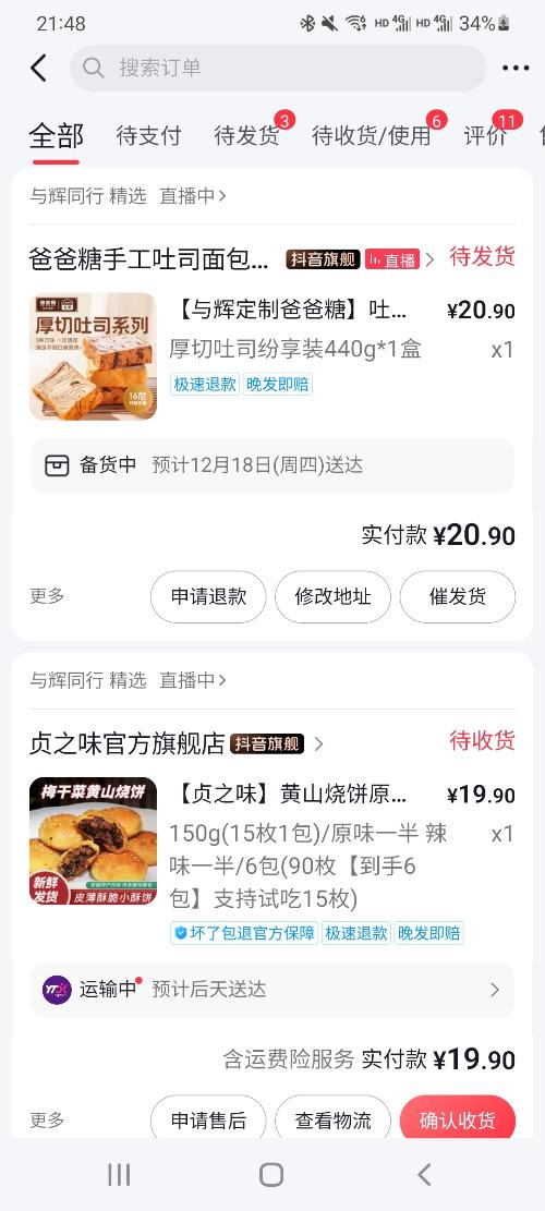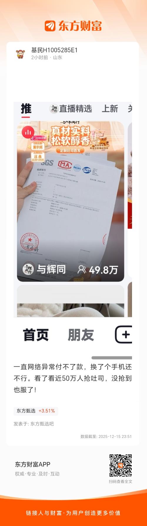$东方甄选(HK|01797)$与辉同行的定制款爸爸糖吐司一共大概20万单,目前显示付款19.9万单,也就是说还有1000单没付款