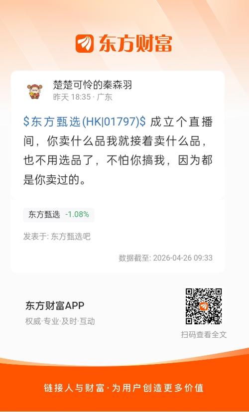 $东方甄选(HK|01797)$从旁观者的角度看,这个明明在甄选主播中能力并不突出,也没啥能力。在以前为啥那么重用,咱也不知道。个人觉得就是跟小孙关系好的原因。